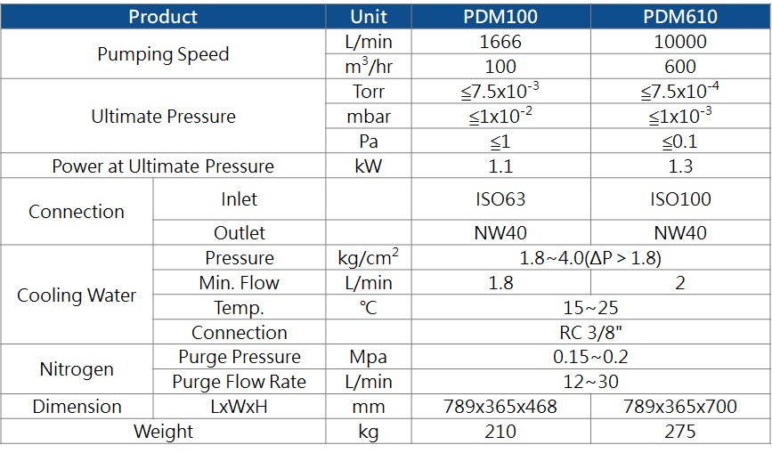 PDM/PMH 系列乾式真空泵浦 |