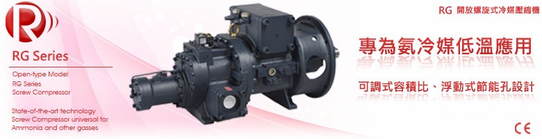 RG系列開放螺旋式式壓縮機(jī),可廣泛應(yīng)用於空調(diào)及冷凍系統(tǒng),特別為氨(R-717)冷媒應(yīng)用設(shè)計(jì),並適用於各式冷媒以及高電壓系統(tǒng)